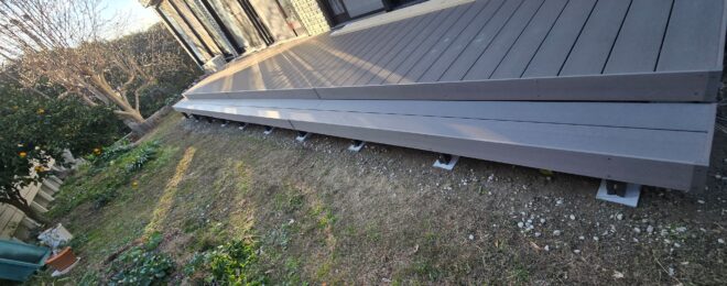 既存ウッドデッキ解体後 地均し 束石 ウッドデッキ新設 before after …